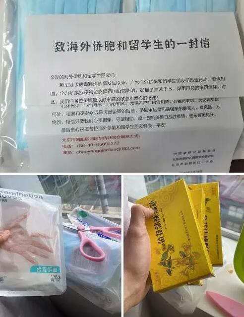 海外學子收到北京市朝陽區僑聯的“僑愛心防疫包” “僑愛心防疫包”中包含了一次性口罩,一次性手套、中藥顆粒或膠囊等防疫物資,還有一份《致海外僑胞和留學生的一封信》。 據悉,目前已有19個僑聯組織收到了“僑愛心防疫包”活動資助,另有10余個僑聯組織正在積極籌備中。小小的防疫包濃縮了金光集團助力海外抗“疫”的一片愛心,希望他們平安渡過疫情,金光集團將始終與海外僑胞和留學生們守望相助,共渡難關!
