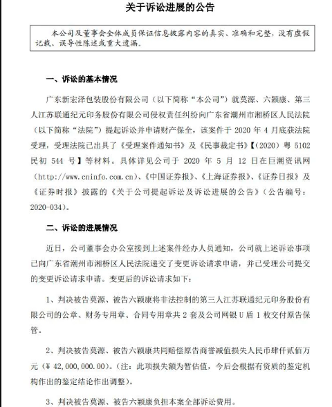 這些年,中國(guó)的包裝印刷業(yè)頗不平靜。繼順灝德美收購風(fēng)波、美盈森金之彩收購風(fēng)波后,中國(guó)的包裝印刷業(yè)又出現(xiàn)第三起上市公司收購對(duì)賭失敗致雙方陷入纏斗的事件。收購兩個(gè)字,太燙手! 6月30日,廣東證監(jiān)局出具了一份《關(guān)于對(duì)廣東新宏澤(10.900,0.42,4.01%)包裝股份有限公司、張宏清、肖海蘭、夏明珠采取出具警示函措施的決定》原因是廣東新宏澤包裝股份有限公司(以下簡(jiǎn)稱新宏澤公司)在收購江蘇聯(lián)通紀(jì)元印務(wù)股份有限公司(以下簡(jiǎn)稱聯(lián)通紀(jì)元)后的法務(wù)糾紛中,新宏澤違反了《上市公司信息披露管理辦法》第二條、第三十條的規(guī)定。簡(jiǎn)單一句話,就是新宏澤作為一家上市公司,在公司重大事項(xiàng)上未及時(shí)披露相關(guān)信息,違反了相關(guān)的監(jiān)管法規(guī)。 這則警示函對(duì)新宏澤來說,或許訓(xùn)誡的意味多于懲戒,但也再一次告訴人們,并購有風(fēng)險(xiǎn),操作需謹(jǐn)慎。 新宏澤2018年一起超2億元的收購?fù)瓿珊螅诤笃谶M(jìn)駐子公司管理過程中,與標(biāo)的公司原股東的矛盾愈演愈烈,一度上演搶奪公章、對(duì)簿公堂的戲碼。而據(jù)最新公告,該收購的子公司相關(guān)人員甚至出現(xiàn)“搶奪保險(xiǎn)柜”等暴力抗法行為。 讓我們來回顧一下事情的始末。 2018年11月20日,新宏澤與江陰穎鴻投資企業(yè)(有限合伙)、六穎康等6位聯(lián)通紀(jì)元股東簽訂《關(guān)于支付現(xiàn)金購買聯(lián)通紀(jì)元55.45%股權(quán)之協(xié)議》,2.22億元現(xiàn)金收購聯(lián)通紀(jì)元55.45%股權(quán)。聯(lián)通紀(jì)元于2019年1月2日完成工商變更登記手續(xù),2019年與新宏澤財(cái)務(wù)并表。 據(jù)新宏澤此后的公告披露,協(xié)議簽訂后,聯(lián)通紀(jì)元原六位股東委派莫源(此次被告)任聯(lián)通紀(jì)元董事、法定代表人、總經(jīng)理(現(xiàn)已免),六穎康(被告,現(xiàn)任總經(jīng)理)任聯(lián)通紀(jì)元董事。新宏澤則委派肖海蘭任聯(lián)通紀(jì)元董事長(zhǎng),鄭金亮任聯(lián)通紀(jì)元董事,何曉麗任聯(lián)通紀(jì)元副總經(jīng)理、財(cái)務(wù)負(fù)責(zé)人。何曉麗于2019年1月3日接收了聯(lián)通紀(jì)元方移交的公章、財(cái)務(wù)專用章、合同專用章。 然而,收購僅僅過去一年,新宏澤突然于4月14日早間發(fā)布公告稱,今年3月25日,聯(lián)通紀(jì)元原總經(jīng)理莫源帶領(lǐng)9人沖進(jìn)財(cái)務(wù)負(fù)責(zé)人何曉麗(聯(lián)通紀(jì)元公章印鑒的負(fù)責(zé)人)辦公室要求交出公章,之后何曉麗等人報(bào)警,隨后,在警方見證下,莫源等人將放置公章的專用保險(xiǎn)柜挪回何曉麗辦公室,但強(qiáng)行將放置保險(xiǎn)柜的辦公室門加鎖控制,致使江蘇聯(lián)通紀(jì)元公司一直無法正常經(jīng)營(yíng)。但糾紛并未就此終結(jié),隨后的4月5日,莫源等人將放置保險(xiǎn)柜的辦公室門、窗全部用鐵皮等封住,公司人員為此也多次報(bào)警,但公章被侵占問題并未解決。 關(guān)于公司印章,新宏澤在公告中提到,4月10月公司發(fā)現(xiàn)聯(lián)通紀(jì)元公章、財(cái)務(wù)章被擅自重新刻制,并且公司未曾接觸過該公章。對(duì)此,莫源向財(cái)聯(lián)社記者表示,自己確實(shí)重新刻制了聯(lián)通紀(jì)元的公章,但是完全符合規(guī)定,履行了備案手續(xù)。 聯(lián)通紀(jì)元位于江陰市澄錫路283號(hào),4月20日上午,財(cái)聯(lián)社記者在聯(lián)通紀(jì)元公司門口看到,一隊(duì)大約10人的安保隊(duì)伍站立于大門一側(cè)。據(jù)悉,該安保隊(duì)伍受雇于新宏澤,已在聯(lián)通紀(jì)元公司門口多天。此外,財(cái)聯(lián)社記者了解到,新宏澤派駐到聯(lián)通紀(jì)元的兩位員工一直守在財(cái)務(wù)辦公室樓上,晚上就打地鋪睡在財(cái)務(wù)辦公室門口,平時(shí)吃飯則是點(diǎn)外賣。 那么,這起兩敗俱傷的紛爭(zhēng)卻是因何而起的呢? 根據(jù)莫源提供的材料,2020年3月19日,聯(lián)通紀(jì)元召開第二屆董事會(huì)第六次會(huì)議,審議關(guān)于公司2019年度計(jì)提固定資產(chǎn)減值準(zhǔn)備的議案。議案顯示,2019年聯(lián)通紀(jì)元計(jì)提固定資產(chǎn)減值準(zhǔn)備658萬元,該部分固定資產(chǎn)是聯(lián)通紀(jì)元生產(chǎn)設(shè)備,總計(jì)15臺(tái),該資產(chǎn)減值很大程度上影響了聯(lián)通紀(jì)元2019年度業(yè)績(jī),由此可能觸發(fā)業(yè)績(jī)對(duì)賭中的股權(quán)回購條款,上述議案也成為雙方此次沖突的起點(diǎn)。