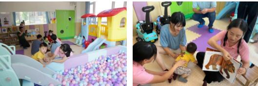 據(jù)了解,該項(xiàng)目2020年首批三個中心設(shè)在寧波路幼兒園、蘭州路幼兒園、桂林路幼兒園。每個中心配備了2-3名經(jīng)過專業(yè)培訓(xùn)的養(yǎng)育師,中心一周最多可為50-70名幼兒及其家長提供服務(wù)。 中心聘請專業(yè)團(tuán)隊(duì)進(jìn)行室內(nèi)設(shè)計(jì)和軟裝施工,在保證幼兒安全的前提下,科學(xué)分區(qū),滿足孩子閱讀、娛樂等不同的需求,同時減少相互間干擾。每個中心除了建設(shè)有兩個一對一課程室外,還劃分了閱讀區(qū)、自由活動區(qū),配備了560冊圖書,兩套能夠滿足6--36個月孩子不同周齡使用的玩教具。中心還配備了海洋球池、滑梯組合、平衡木、小推車等大型和小型玩具。中心課程由專業(yè)的研發(fā)機(jī)構(gòu)設(shè)計(jì),根據(jù)幼兒不同周齡的成長發(fā)育特點(diǎn)進(jìn)行智能系統(tǒng)線上科學(xué)排課,有針對性的授課。課程內(nèi)容包括一對一親子閱讀、一對一親子互動、集體故事會和主題集體活動。