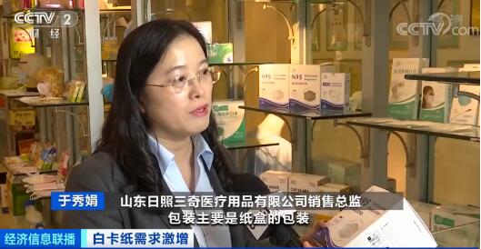 亞太森博(山東)漿紙有限公司副董事長 賈明昊:今年要比去年增加一萬多噸,將近兩萬噸的產能,屬于滿負荷的生產。 此外,在今年特殊的疫情背景下,口罩等醫護用品的銷量也明顯增長,這也給印刷包裝廠帶來大批量的訂單。