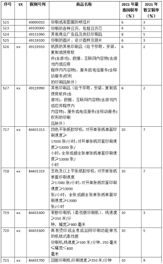 據粗略統計,883項商品中涉及到印刷行業的相關調整如下: