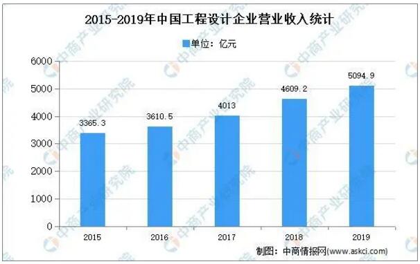 數(shù)據(jù)來源:中國石油和化學(xué)工業(yè)聯(lián)合會、中商產(chǎn)業(yè)研究院整理 建材領(lǐng)域 我國是建筑建設(shè)大國,建材消耗量處在全球前列。在建材領(lǐng)域中,公司產(chǎn)品主要用于石膏粉、膩子粉、瓷磚粘結(jié)劑、填縫劑、防水涂料等各類特種砂漿產(chǎn)品的自動包裝。數(shù)據(jù)顯示,2019年中國工程設(shè)計收入5094.9億元,與上年相比增加了10.5%。