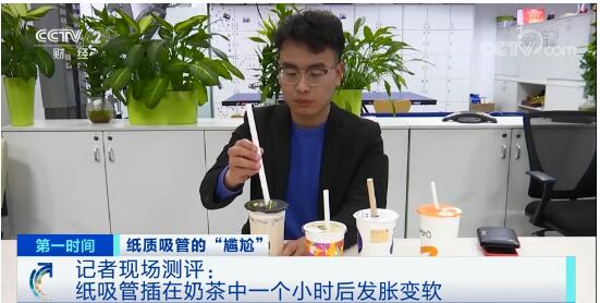 如果是這種PLA聚乳酸的吸管,它的外形變化其實并沒有很嚴重。根據記者個人的感覺,這些替換過后的吸管,對于奶茶的口感的影響并不是很大,主要的變化就是這些吸管在使用的過程中會逐漸變軟。