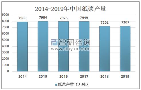 資料來(lái)源:智研咨詢整理 二、產(chǎn)量 紙漿是制造衛(wèi)生紙重要原材料,常用有棉漿、木漿、竹漿、草漿等天然無(wú)污染的原料。2014-2017年中國(guó)紙漿產(chǎn)量較為平穩(wěn),2018-2019年中國(guó)紙漿產(chǎn)量有所下降,2019年中國(guó)紙漿產(chǎn)量為7207萬(wàn)噸。 2014-2019年中國(guó)紙漿產(chǎn)量