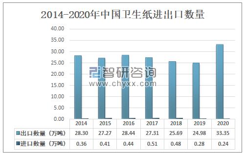 資料來(lái)源:國(guó)家統(tǒng)計(jì)局、智研咨詢整理 三、進(jìn)出口 2020年受新冠肺炎疫情影響,國(guó)外短期內(nèi)出現(xiàn)的衛(wèi)生紙囤貨搶購(gòu)風(fēng)潮拉動(dòng)了中國(guó)衛(wèi)生紙成品的出口。2020年中國(guó)衛(wèi)生紙出口數(shù)量為33.35萬(wàn)噸,較2019年增加了8.37萬(wàn)噸;2020年中國(guó)衛(wèi)生紙進(jìn)口數(shù)量為0.24萬(wàn)噸,較2019年減少了0.04萬(wàn)噸。 2014-2020年中國(guó)衛(wèi)生紙進(jìn)出口數(shù)量