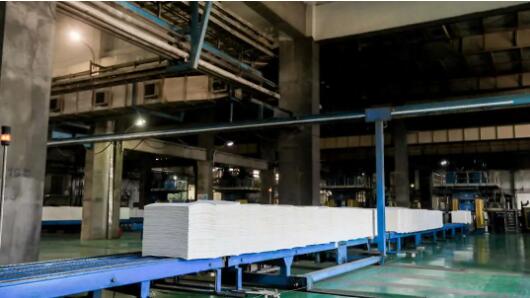 成品 成型的漿板由切紙機切分成一定重量大小的規格,然后再輸送到每一條包裝線。 為了運輸方便,傳輸帶上都是成品漿板,它們都是經過白度和污點評判等級而篩選出的。 設備基本上全自動運行,一天的產量可有3000噸。除了機器檢修期間除外,其他時間都在不間斷的運行中。