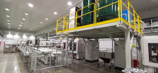 目前,餐盒生產與原有的包裝材料生產車間僅一墻之隔,換上工作服,做好個人防護準備,再經過消毒艙,一個全新的生產車間躍然在目,但見成型、并線、品檢、堆疊、輸送,除去裝箱和碼垛,一切都在流水線上井然完成。