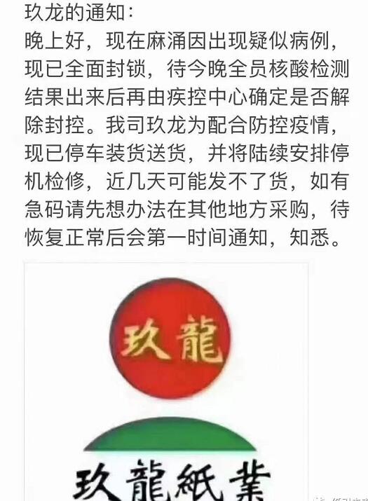 按照市鎮有關防疫工作部署,從2021年6月20日起,將對我鎮如下路段實施交通管制: 麻涌鎮轄區所有跨鎮、跨市地方公路出口(中麻公路螺村工業區麻涌往中堂方向、舊中麻公路鷗涌水閘路段麻涌往中堂方向、水鄉大道東環路路口麻涌往東莞市區方向、廣麻大道東江大橋大盛村往廣州開發區方向),以及廣深高速公路、沿江高速公路等2條高速公路入口(廣深高速麻涌收費站廣州方向入口、廣深高速麻涌收費站深圳方向入口、沿江高速麻涌收費站東莞市區往新沙港方向入口、沿江高速麻涌收費站新沙港往東莞市區方向入口),實施交通管制,禁止除持有通行證車輛以外的一切車輛通行。 交通管制解除時間待定。 麻涌鎮新型冠狀病毒肺炎 疫情防控指揮部辦公室 2021年6月20日 東莞是我國最大的包裝紙生產城市,玖龍、理文、建暉、金洲都在此扎根,包裝紙年產能都超過100萬噸。其中,產能最大的的玖龍紙業(東莞)有限公司就位于麻涌鎮,公司共有16臺造紙機,生產卡紙丶高強瓦楞原紙丶涂布灰底白板紙及文化用紙,總產能近600萬噸。 據報道,造成此輪廣東疫情的罪魁禍首是新冠病毒德爾塔變異毒株(B.1.617.2,首次由印度發現),它是迄今為止傳播力最強的變異株,我國采取嚴格的封控措施,控制該病毒的擴散。疫情在東莞發生后,對當地造紙企業的影響不言而喻,雖然企業可以通過封閉式管理保證人員的安全和正常生產,但是每天生產所需的廢紙、各種化工原料以及成品紙的運輸將會受到一定影響。 一段時期內(長短依據根據疫情發展和防控要求),廢紙和成品紙價格的市場波動在所難免。
