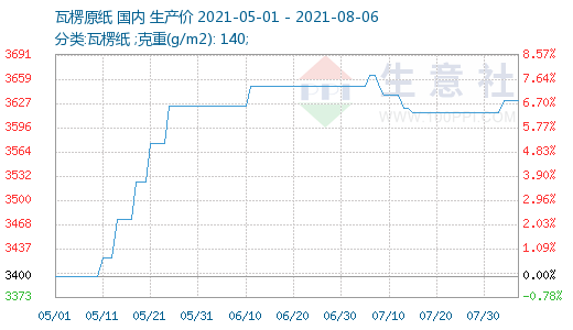 據(jù)此前山鷹國際發(fā)布公告顯示,2021年7月,公司國內(nèi)造紙銷量達(dá)48.95萬噸,同比增長0.85%,包裝銷量達(dá)1.73億平方米,同比增長25.63%。1至7月,國內(nèi)造紙銷量達(dá)330.15萬噸,同比增長41.32%,包裝銷量達(dá)11.2億平方米,同比增長50.13%。公司產(chǎn)能規(guī)模擴大,產(chǎn)品市場占有率提升,行業(yè)綜合競爭力逐步增強。 廢紙瓦紙價格同步上漲短期可能偏強走勢