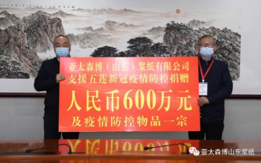 11月2日上午,亞太森博(山東)漿紙有限公司助力五蓮縣疫情防控捐贈儀式在日照市政府舉行。副市長高月波主持捐贈活動,并為公司頒發(fā)了捐贈證書。公司董事長、總經(jīng)理陳小榮代表企業(yè)向五蓮縣捐贈600萬元人民幣及疫情防控物品一宗,強(qiáng)力支援新冠疫情防控。
