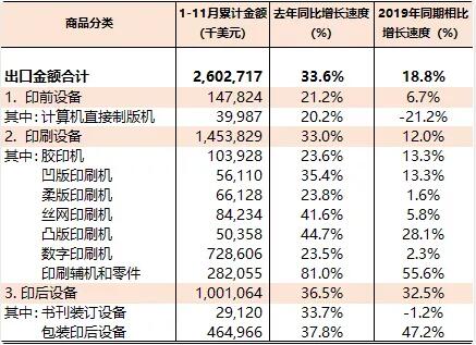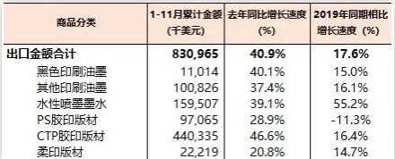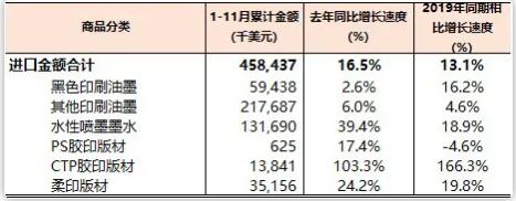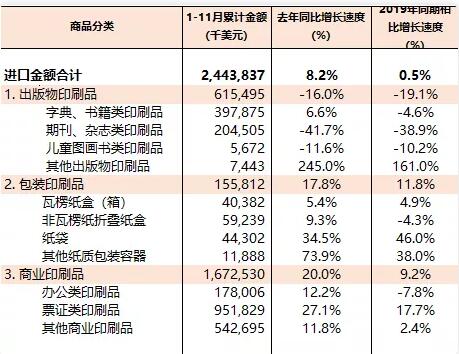 2021年1-11月國內印刷產業相關商品進出口呈現已下特點: