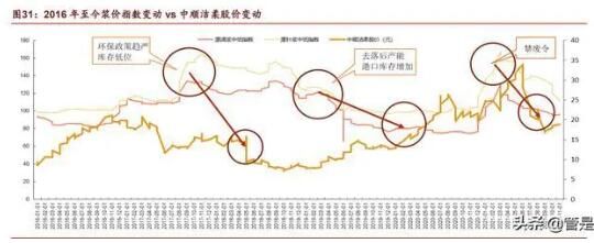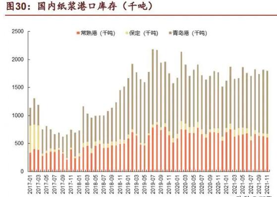 4、原材料:預(yù)計(jì)漿價(jià)短期難以回升股價(jià)聯(lián)動(dòng) 1)港口庫存回升+新增產(chǎn)能 預(yù)計(jì)漿價(jià)短期不會(huì)大幅上漲 2021 年木漿進(jìn)口量同比下降。生活用紙?jiān)牧蠟槟緷{,我國木漿對(duì)進(jìn)口依存度較 高,2018-2020 年進(jìn)口總量持續(xù)增長。疫情+環(huán)保政策影響下,2020 年國際漿價(jià)大 跌,國內(nèi)木漿下游企業(yè)囤貨,進(jìn)口總量同比上漲 10.28%。2021 年漿價(jià)回升,由于 國內(nèi)企業(yè)存貨量充足,截至 2021 年 10 月底,木漿進(jìn)口總量同比下降 4.75%。 國內(nèi)紙漿港口庫存呈波動(dòng)上漲趨勢。卓創(chuàng)資訊統(tǒng)計(jì)的數(shù)據(jù)顯示,2021 年,歐洲主要 木漿出口國家的港口庫存總量下降,但 8-9 月有所回升。根據(jù) Wind 數(shù)據(jù)庫,我們 統(tǒng)計(jì)了三大港口常熟港、保定、青島港三大港口紙漿庫存總量,目前國內(nèi)紙漿港口 庫存總量存在波動(dòng)上漲趨勢。