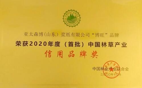 近日,林草健康產業國家創新聯盟主辦的“第二屆全國林草健康產業高峰論壇”在江西省南昌市隆重舉行。亞太森博憑借“BoardOne博旺”白卡紙產品的優異表現,榮獲“2020年度(首批)中國林業產業信用品牌”稱號!