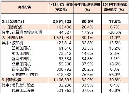 同期,國內(nèi)印刷器材進出口貿(mào)易順差4.41億美元(同比增長107.9%、較2019年同期增長31.9%)。 本期觀察 總結(jié): 2021年1-12月國內(nèi)印刷產(chǎn)業(yè)相關(guān)商品進出口總值達242.50億美元。同期,印刷品、印刷裝備、印刷器材三大類商品進出口均實現(xiàn)穩(wěn)定持續(xù)增長,三類商品的進口和出口規(guī)模不僅超越2020年同期水平,且較2019年同期也有較大幅度增長: 與2020年同期相比,國內(nèi)印刷品進口增長8.3%、出口增長19.1%;印刷裝備進口增長39.4%、出口增長30.6%;印刷器材進口增長12.9%、出口增長43.4%; 與2019年同期相比,其中,國內(nèi)印刷品進口增長0.6%、出口增長16.1%;印刷裝備進口增長25.5%、出口增長17.6%;印刷器材進口增長13.1%、出口增長21.1%。 與2020年同期相比,2021年1-12月國內(nèi)印刷品、印刷裝備、印刷器材進口、出口增長較快的前五位商品類別如下: 進口:其他出版物印刷品(+226.3%)、印刷輔機和零件(+61.2%)、其他紙質(zhì)包裝容器(+58.7%)、膠印機(+50.5%)、計算機直接制版機(+47.7%); 出口:印刷輔機和零件(+76.6%)、票證類印刷品(+63.4%)、CTP膠印版材(+49.7%)、其他印刷油墨(+38.7%)、水性噴墨墨水/PS膠印版材(+38.2%)。 同期,國內(nèi)印刷品、印刷裝備、印刷器材進出口相對萎縮的商品類別如下: 進口:柔版印刷機(-45.6%)、 凹版印刷機(-39.7%)、期刊雜志類印刷品(-29.9%)、凸版印刷機(-27.1%)、兒童圖畫書類印刷品(-17.4%)、包裝印后設(shè)備(-15.4%); 出口:辦公類印刷品(-6.0%)。 有關(guān)2021年國內(nèi)印刷產(chǎn)業(yè)進出口商品的規(guī)模、結(jié)構(gòu)、分布的特點、與以往年份相比國內(nèi)印刷產(chǎn)業(yè)進出口商品的規(guī)模、結(jié)構(gòu)、分布的變化、相關(guān)商品子項進出口數(shù)量和價格的詳細信息,近期推出的《2021年國內(nèi)印刷產(chǎn)業(yè)相關(guān)產(chǎn)品進出口年度報告》將進行深入分析探討。同時,2022年1月1日開始實施的《區(qū)域全面經(jīng)濟伙伴關(guān)系協(xié)定》(RCEP)對國內(nèi)印刷產(chǎn)業(yè)進出口商品的影響也將在年度報告中有專題討論。敬請關(guān)注!