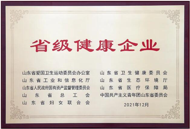 2021年3月,省愛衛辦、省衛生健康委員會等九部門聯合下發了《關于印發山東省健康企業建設活動實施方案的通知》。太陽紙業根據要求,組織成立了“健康促進企業領導小組”,建立制度、制定方案、編制計劃,不斷優化健康環境、健康管理與服務,弘揚健康文化。2021年9月,公司以總分974分的成績通過現場技術評估,12月3日,山東省愛國衛生運動委員會辦公室發布公示,公司被評為省級健康企業。