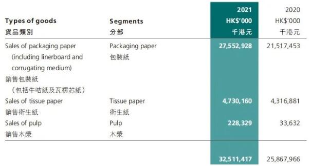 可見,2021年理文造紙的各項業務均有不同程度的上漲。其中,基數較大的包裝紙業務貢獻了公司業績增長的主要增量,而就增速來看木漿業務則是不遑多讓。