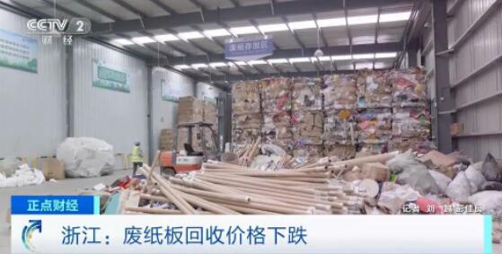 記者來到浙江省慈溪市的一家廢品打包站,這里來往的回收商并不多,機器也沒有在運行。幾位小型回收商表示,近期廢紙板的回收情況十分冷淡。 廢品回收人員 樊師傅:去年黃板紙要2元多一公斤,今年現在只有1.5元多了。超市紙現在只有1.2元(一公斤),跌了三四角、四五角左右。 廢紙箱的回收價下跌,也讓周圍很多工廠和居民出手的意愿下降。多數回收商說近期的收入大打折扣。