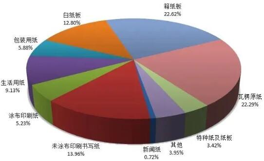 (2022年紙及紙板各品種生產量占總產量的比例)