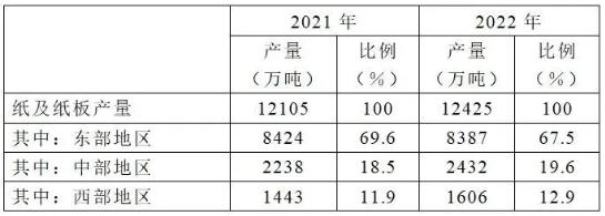 (2022年紙及紙板生產量區域布局變化)