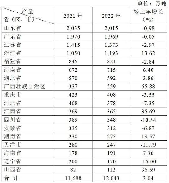 (2022年紙及紙板產量100萬噸以上的省(區、市))