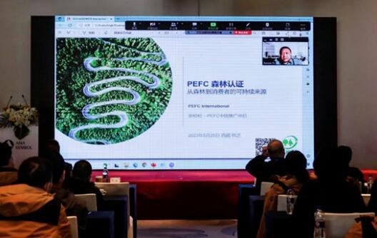 中國區紙板商務總監錢誠先生 在亞太森博可持續發展的目標中,特別強調協同發展,也包括了現在大家比較關注的森林認證體系。PEFC中國區負責人余柏松先生作為特別嘉賓通過線上連線的方式為大家進行了《PEFC森林認證——從森林到消費者的可持續來源》的分享。余總介紹了PEFC的特征、優勢及市場可信度,隨著消費者在購買產品時對標識的認可度加強,進行PEFC認證,有助于提高消費者對企業負責任林業重要性的認識。