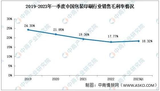 近年來,包裝印刷銷售毛利率呈現下滑趨勢,2019年包裝印刷銷售毛利率24.30%,2022年銷售毛利率17.77%,2023年一季度包裝印刷毛利率18.32%。