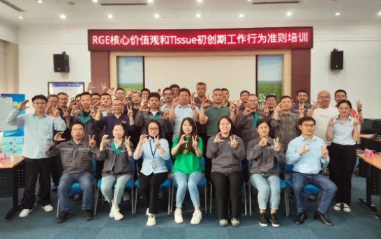 6月,亞太森博(山東)漿紙有限公司生活用紙日照工廠(TRZ)組織開展了8場《RGE核心價值觀和Tissue初創期工作行為準則》課程培訓,旨在讓TRZ全體員工深入理解RGE宗旨、愿景、核心價值觀并更好的踐行核心價值觀和Tissue初創期工作行為準則。公司董事長、總經理吳和平,生活用紙事業部人力資源高級經理朱建平、生活用紙日照工廠廠長朱升友及300多名員工參加了培訓。