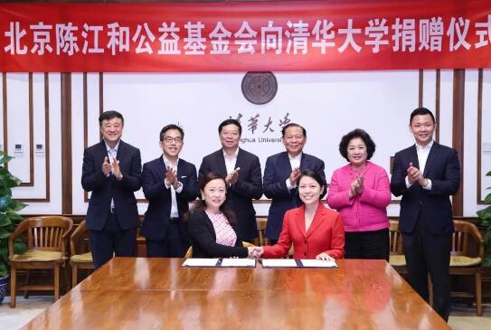 9月24日,北京陳江和公益基金會與清華大學教育基金會在北京簽署醫學項目捐贈協議。清華大學黨委書記、教育基金會理事長邱勇,副校長楊斌,副教務長、醫學院主任黃天蔭,金鷹集團主席陳江和,主席夫人黃瑞娥,金鷹集團執行董事陳建升等出席活動。金鷹中國董事長陳昱廷和清華大學教育基金會秘書長袁桅代表雙方在協議上簽字。邱勇書記向陳江和主席頒發捐贈證書。