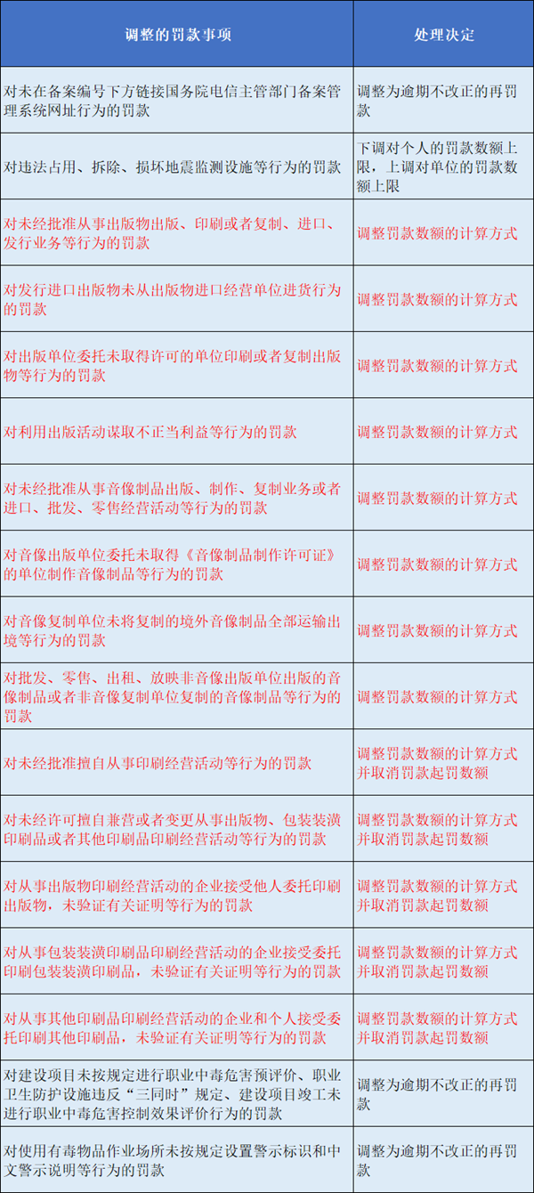 值得關(guān)注的是,在本次調(diào)整的17個(gè)罰款事項(xiàng)中,有13個(gè)涉及印刷、包裝、出版等行業(yè)相關(guān)領(lǐng)域。
