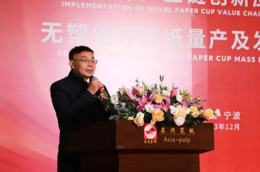 金光集團(tuán)APP(中國(guó))大紙事業(yè)部CEO王樂(lè)祥先生在剪彩儀式致辭,他高度評(píng)價(jià)了金光集團(tuán)APP、巴斯夫BASF、都佰城DBC的技術(shù)營(yíng)銷團(tuán)隊(duì)在無(wú)塑紙杯產(chǎn)品開(kāi)發(fā)過(guò)程中所做出的積極努力和成果。他相信,無(wú)塑紙杯將給食品包裝行業(yè)帶來(lái)革命性的改變,為人類的健康和地球的美好帶來(lái)更多的福音。王總在活動(dòng)現(xiàn)場(chǎng)向行業(yè)終端和消費(fèi)者發(fā)出了綠色倡議:“Joinus!Makeapositivechange.(加入我們,做出積極的改變!)”