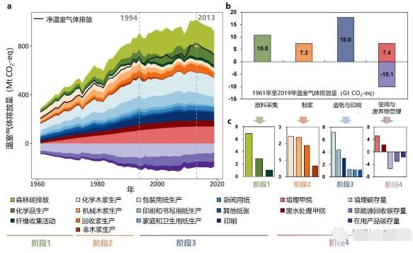 1961-2019年造紙相關全球溫室氣體排放量 受訪對象供圖 王玉濤團隊表示,該論文是《自然》主刊首篇關于造紙行業凈零排放的研究文章,可為推動工業行業逐步脫碳并實現凈零排放目標提供科學參考。