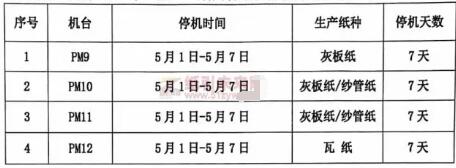 四川金田紙業2024年“五一”期間各紙機停機計劃
