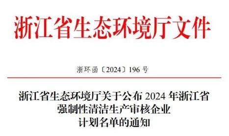 為貫徹落實《中華人民共和國清潔生產促進法》,根據《清潔生產審核辦法》和生態環境部、國家發展和改革委員會相關文件精神,浙江省生態環境廳核定了2024年浙江省強制性清潔生產審核企業計劃名單,現予以公布,并將有關事項通知如下: