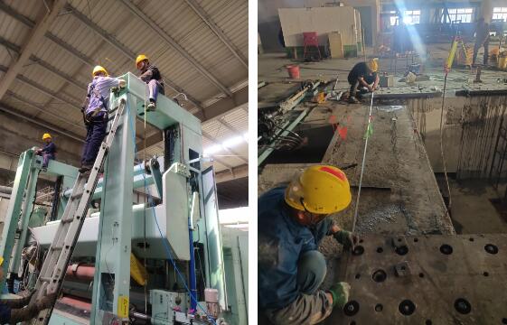 這是一場(chǎng)跨越地域的接力賽,也是一次智慧與汗水的較量。胡波經(jīng)理精心策劃,安排專業(yè)人員前往江蘇博匯實(shí)地考察,確保設(shè)備完好無(wú)損后,迅速組織團(tuán)隊(duì)進(jìn)行拆解、標(biāo)記與運(yùn)輸工作。江蘇同仁更是不辭辛勞,夜以繼日,僅用短短七日便完成了復(fù)卷機(jī)完整拆解的工作。 安裝之戰(zhàn),號(hào)角長(zhǎng)鳴。胡波經(jīng)理親力親為,會(huì)議連連,施工計(jì)劃精細(xì)到每一分鐘,確保每個(gè)環(huán)節(jié)無(wú)縫銜接。因舊物復(fù)用,挑戰(zhàn)重重,團(tuán)隊(duì)成員們不畏艱難,邊安裝邊調(diào)試,用智慧和汗水攻克了一個(gè)又一個(gè)難題。特別是擋紙器安裝遇阻時(shí),胡波經(jīng)理迅速集結(jié)團(tuán)隊(duì)深夜研討對(duì)策,次日清晨即赴現(xiàn)場(chǎng)實(shí)測(cè),迅速找到并實(shí)施了解決方案,展現(xiàn)了APP團(tuán)隊(duì)卓越的領(lǐng)導(dǎo)力和凝聚力。
