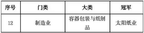 近日,由新華網(wǎng)、中國(guó)企業(yè)改革與發(fā)展研究會(huì)、浙江省企業(yè)聯(lián)合會(huì)共同主辦的“向新而行向上生長(zhǎng)——2024企業(yè)家江夏行”主場(chǎng)活動(dòng)隆重舉行。會(huì)上,清華大學(xué)全球產(chǎn)業(yè)研究院首席專家、北京大學(xué)光華管理學(xué)院教授何志毅發(fā)布并解讀了《中國(guó)產(chǎn)業(yè)領(lǐng)軍企業(yè)2024》排行榜。其中,太陽(yáng)紙業(yè)被評(píng)選為容器包裝及紙制品類別冠軍企業(yè)。 據(jù)了解,產(chǎn)業(yè)領(lǐng)軍企業(yè)的定義,是按照經(jīng)濟(jì)學(xué)的產(chǎn)業(yè)集中度CR4概念,選取在產(chǎn)業(yè)內(nèi)綜合得分排名前四名的企業(yè),分別為冠軍企業(yè)、亞軍企業(yè)、季軍企業(yè)、殿軍企業(yè),統(tǒng)稱為領(lǐng)軍企業(yè)。本次榜單涵蓋了90個(gè)大類產(chǎn)業(yè)中的360家企業(yè),太陽(yáng)紙業(yè)在容器包裝及紙制品行業(yè)中榮膺首位,獲得“冠軍企業(yè)”稱號(hào),并在綜合排名中位列第244位。 360家領(lǐng)軍企業(yè)基礎(chǔ)榜單