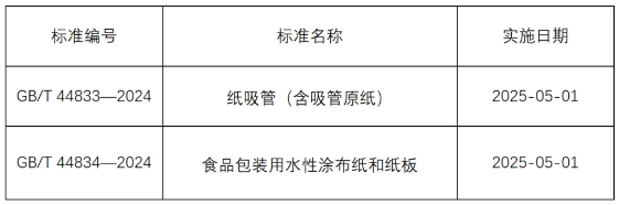2024年10月6日,國家市場監(jiān)督管理總局(國家標(biāo)準(zhǔn)化管理委員會)發(fā)布2024年第24號公告,批準(zhǔn)發(fā)布《水泥壓蒸安定性試驗(yàn)方法》等328項(xiàng)國家標(biāo)準(zhǔn)和3項(xiàng)國家標(biāo)準(zhǔn)修改單,其中包括《紙吸管(含吸管原紙)》《食品包裝用水性涂布紙和紙板》2項(xiàng)造紙領(lǐng)域國家標(biāo)準(zhǔn),具體信息如下。