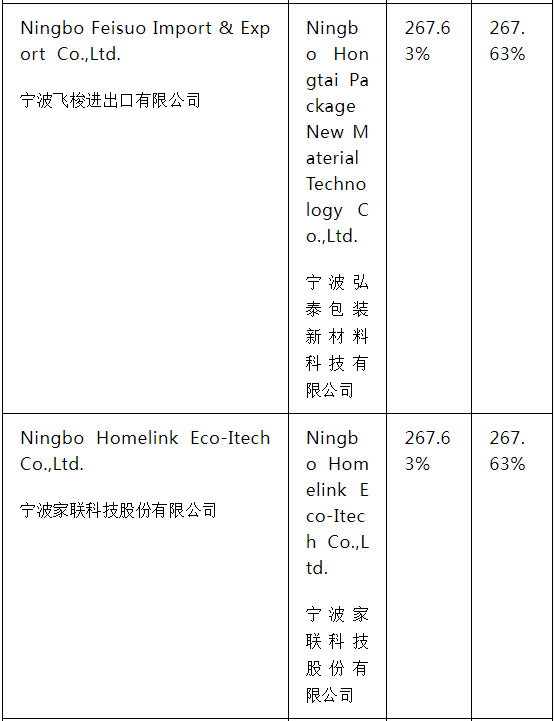 2025年1月22日,美國商務部對進口自中國、泰國和越南的紙盤(Paper Plates)作出反傾銷終裁,裁定中國生產商/出口商的傾銷率為267.63%—515.40%(抵消補貼后的保證金調整為267.63%—504.86%,具體稅率詳見下表)、泰國生產商/出口商的傾銷率為5.57%—73.17%、越南生產商/出口商的傾銷率為30.42%—165.27%(抵消補貼后的保證金調整為24.89%—159.74%)。同時,美國商務部對進口自中國和越南的紙盤作出反補貼肯定性終裁,裁定:福州恒利紙業有限公司(Fuzhou Hengli Paper Co., Ltd.)稅率為11.38%、金華市達達紙塑制品有限公司(Jinhua P&P Product Co., Ltd.)稅率為4.47%、寧波創酷國際貿易有限公司(Ningbo Artcool Co., Ltd.)、寧波奉化永發印務文具有限公司(Ningbo Fenghua Yongfa Printing Stationery Co., Ltd.)、浙江金晟環保股份有限公司 (Zhejiang Kingsun Eco-Pack Co., Ltd.)、浙江凌榮工藝品有限公司(Zhejiang Lingrong Crafts Co., Ltd.)因未配合應訴,被適用295.08%的懲罰性稅率、其他生產商/出口商的稅率為10.61%;越南生產商/出口商的稅率為5.53%—225.90%。美國國際貿易委員會(ITC)預計將于2025年3月7日對上述國家涉案產品作出反傾銷和反補貼產業損害終裁。本案涉及美國海關編碼4823.69.0040項下產品。 2024年2月15日,美國商務部宣布對進口自中國、泰國和越南的紙盤發起反傾銷調查,同時對進口自中國和越南的紙盤發起反補貼調查。2024年6月24日,美國商務部對進口自中國和越南的紙盤作出反補貼肯定性初裁。2024年8月29日,美國商務部對進口自中國、泰國和越南的紙盤作出反傾銷初裁。 中國出口商/生產商反傾銷稅率表: