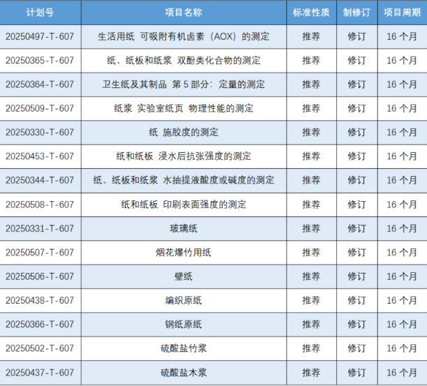 近日,國家標準化管理委員會下達2025年第二批推薦性國家標準計劃及相關標準外文版計劃的通知(國標委發[2025] 7號)。其中,《壁紙》等15項造紙領域國家標準計劃項目獲批立項,具體如下所示。
