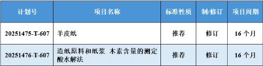 近日,國家標準化管理委員會下達2025年第四批推薦性國家標準計劃及相關標準外文版計劃的通知(國標委發〔2025〕23號)。其中,《羊皮紙》等2項造紙領域國家標準計劃項目獲批立項,具體如下所示。
