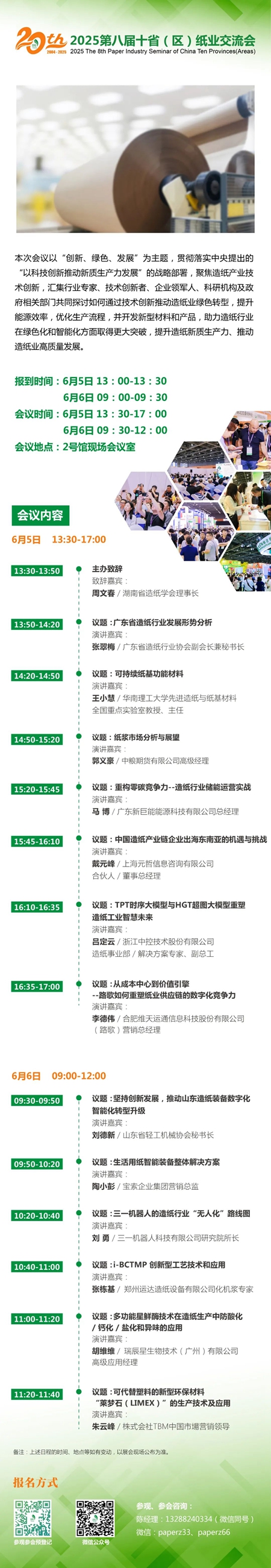 2025第八屆十省(區)紙業交流會聚焦智能制造、前沿技術、行情趨勢等,為造紙及上下游相關企業代表搭建高層次、全方位的溝通交流平臺,凝聚廣泛共識、增進彼此友誼,為產業形成新質生產力蓄勢賦能。