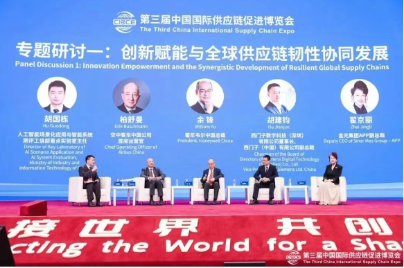 7月17日,中國國際商會主辦的第三屆鏈博會先進制造主題活動在北京中國國際展覽中心順利舉行。金光集團APP副總裁翟京麗受邀出席作專題研討分享。 活動伊始,中國貿促會副會長李興乾等出席并致辭。值得一提的是,美國英偉達公司創始人兼首席執行官黃仁勛和之江實驗室主任、阿里云創始人王堅于活動現場開展爐邊談話。 此次先進制造主題活動設置了多場專題論壇與研討環節,與會嘉賓圍繞人工智能、工業互聯網、綠色制造等熱點話題展開深入交流,分享前沿技術應用成果與創新發展思路。翟總與來自空中客車、霍尼韋爾、西門子的各跨國企業高管,圍繞“創新賦能與全球供應鏈韌性協同發展”專題,展開有益探討。