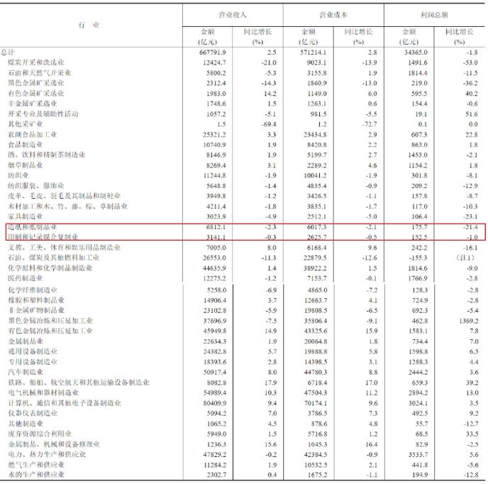 數據顯示,2025年1-6月,全國規模以上工業企業實現利潤總額34365.0億元,同比下降1.8%。其中,造紙和紙制品業實現利潤總額175.7億元,同比下降21.4%;印刷和記錄媒介復制業實現利潤總額152.5億元,同比下降1.0%。 在營業收入方面,規模以上工業企業實現營業收入66.78萬億元,同比增長2.5%。其中,造紙和紙制品業實現營業收入6812.1億元,同比下降2.3%;印刷和記錄媒介復制業實現營業收入3141.1億元,同比下降0.3%。