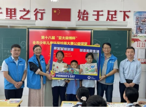 9月25日下午,亞太森博(山東)漿紙有限公司文化紙事業部、公司事務部相關人員來到嵐山區陳金榮僑心小學,為該校捐贈復印紙,同時開展第十八屆“亞太森博杯”全市少年兒童環保繪畫大賽公益課堂活動,以實際行動推動少年兒童的環保意識提高與校企共榮發展。本次活動是亞太森博踐行集團“付出越多,擁有越多”2025 Founder’s Day系列活動之一,也是校企共建企業社會責任活動模式的典型代表。日照市僑聯文化交流部部長張守波、嵐山區僑聯主席安盛傳參加活動。