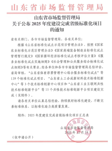 12月19日,山東省市場監督管理局公布2025年度山東省標準化試點項目建設完成情況,亞太森博(山東)漿紙有限公司承擔的循環經濟標準化試點項目成功通過驗收,標志著公司在循環經濟領域的標準化建設工作取得重要階段性成果,為行業綠色低碳發展樹立了標準化標桿。