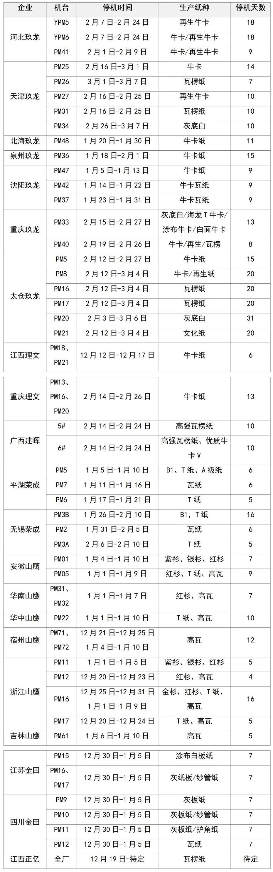 近期,廣東省造紙行業協會根據各企業公告和媒體公開信息進行收集整理,匯總了截至2026年1月9日廣東省內外造紙企業公布的2026年新年停機檢修情況。經初步統計,廣東省內預計減少產能合計121.9萬噸。詳情見下表,信息僅供參考。