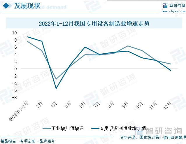 內容概要:造紙設備是專業性很強的行業,涉及機械、化工、材料、防腐等多個技術性領域。在“制造強國”戰略及相關政策引導下,造紙設備行業參與者逐漸增多。隨著造紙設備生產商紛紛加大研發力度及航空、造船等跨行業投資者參與布局造紙機械設備的研發生產,行業技術水平逐步提高。截至2022年底,我國合計擁有2273想造紙設備相關專利,其中實用新型專利1670項,發明專利578項。隨著行業自主創新能力不斷加強,及下游需求拉動下,造紙設備國產化進程也不斷加快。 關鍵詞:造紙設備、紙漿、生活用品紙 一、制造業整體呈恢復向好發展,行業營業收入穩步增長 2022年以來,在國際大宗商品價格高位運行及疫情多地反復爆發影響下,國內制造業受到一定沖擊,但在國家統籌調控下,我國制造業呈恢復向好態勢。2022年,全國規模以上工業生產保持穩定恢復態勢,增加值較上年增長3.6%。造紙設備是專用設備制造業的細分領域,2022年以來,我國專用設備制造業增加值增速與工業增加值增速走勢基本保持一致。2022年1-4月,受多地疫情及俄烏沖突導致的能源價格上漲影響,專用設備生產企業經營受到較大沖擊,行業增加值增速降至-5.5%,位于臨界點以下。5-6月,隨著穩經濟一攬子政策措施,企業復工復產加快,專用設備制造業增加值增速迅速提升。7-9月,國家出臺了一系列推動工業經濟平穩健康發展的措施,專用設備制造業增速保持穩定增長。10-12月,外部不確定性上升,制造業面臨較大壓力,專用設備制造業增速持續下滑;其中12月隨著防疫政策優化調整,新冠感染量大幅增加,專用設備制造業增速下降至-0.5%,降至臨界點以下,行業生產有所回落。