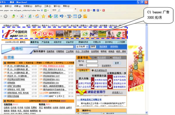 中國紙網品牌欄目頂部,深受喜愛的廣告形式之一,大面積的發布空間投放于頁面的頂部,產生很強宣傳效果。適合于品牌、產品推廣及銷售等。隨著中國紙網商務力度的不斷加大,這一廣告位的含金量會越來越高。